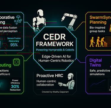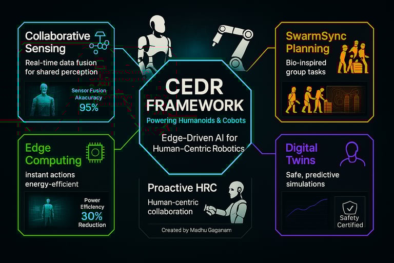 Introduction to CEDR, a groundbreaking framework redefining Physical AI for humanoids! With smart sensing, edge computing, digital twins, & SwarmSync, it drives innovation in robotics.